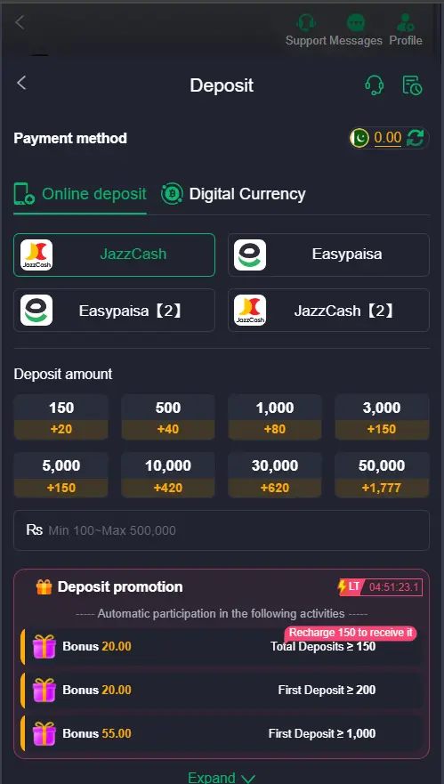 It works with EasyPaisa, Jazz Cash, and bank transfer. Easily deposit and withdraw your money in seconds. Also, it supports other wallets for choice. Small starts are okay. Therefore, it is the right fit for the gamers in Pakistan.