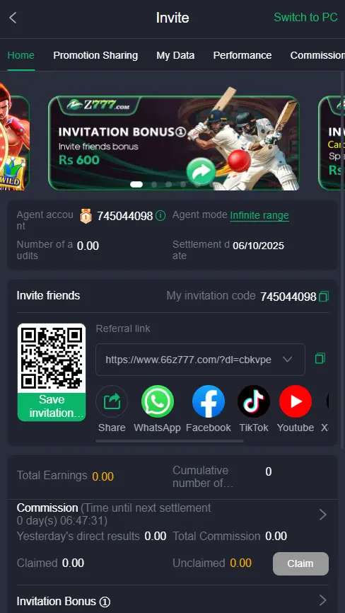 The agents receive a percentage commission on their group’s deposits. 3% agent commission is paid to users who enroll as agents. This commission is based on the players in your team. Also, it helps create a steady income as your network grows. So, share your referral link with your friend circle today.